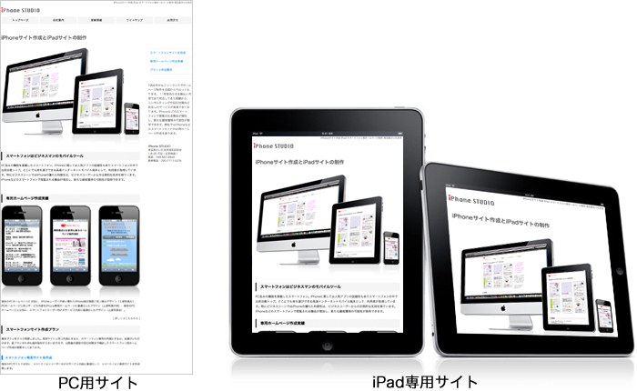 PCホームページと同じサービス内容をiPad専用ホームページに最適化したデザイン